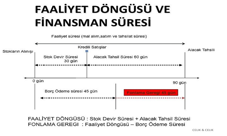 Nakit Dönüşüm Süresi = Stok Tüketilmesi Süresi + Alacak Tahsil Süresi – Ticari Borç Ödeme Süresi